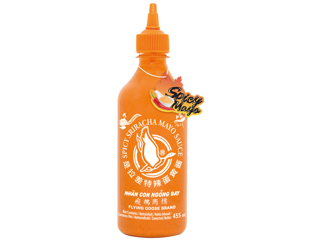 Flying Goose Sriracha Chili Spicy Mayo (455ml) is a creamy, spicy mayonnaise infused with the unmistakable heat of classic Sriracha chili sauce. It blends fiery chili notes with the smooth texture of high-quality mayo – perfect as a dip, for burgers, sandwiches, fries, or sushi.