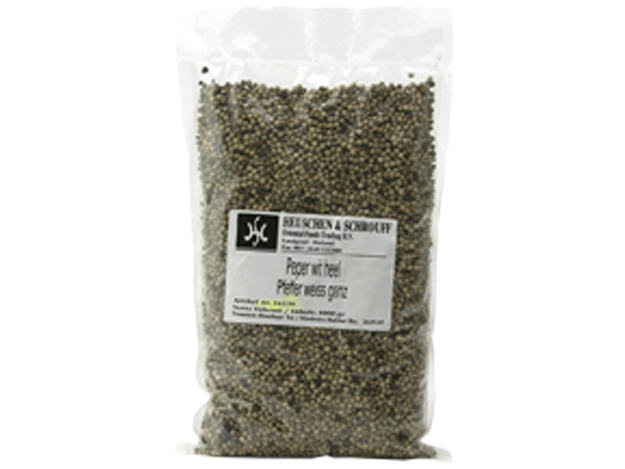 HS Whole White Pepper (Muntok) in the practical 1kg pack comes from Bangka Island in Indonesia. With its mild yet pungent aroma, this pepper is perfect for seasoning light sauces, fish, poultry, and vegetable dishes. Compared to black pepper, Muntok pepper offers a more subtle flavor and is especially popular among gourmet chefs.