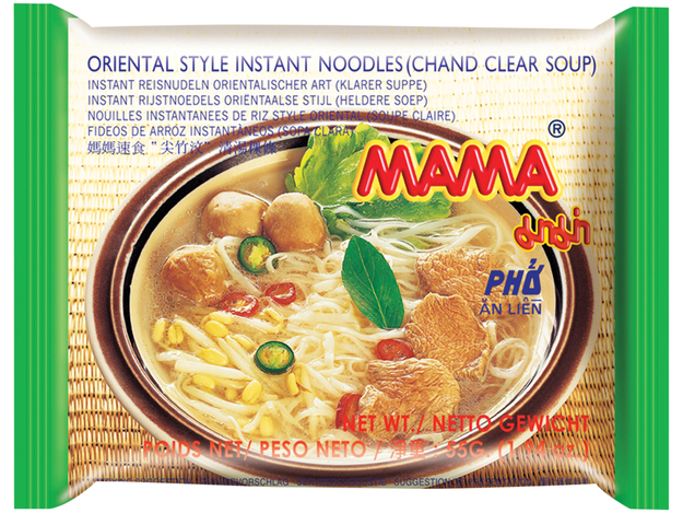 MAMA Instant Rice Noodles Oriental Style (55g) offer an exotic taste with a balanced combination of savory spices reminiscent of Asian street food. The fine rice noodles are served in a flavorful broth inspired by oriental cuisine – perfect for a quick, light, and aromatic meal.
