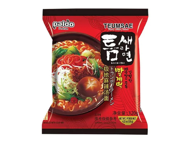 NOODLES: Wheat flour, palm oil, potato starch, salt, wheat gluten, emulsified oil (sunflower oil, emulsifier: soy lecithin), acidity regulators: E501, E500, E339, onion extract, thickener: E412, rapeseed oil, coloring: E101.