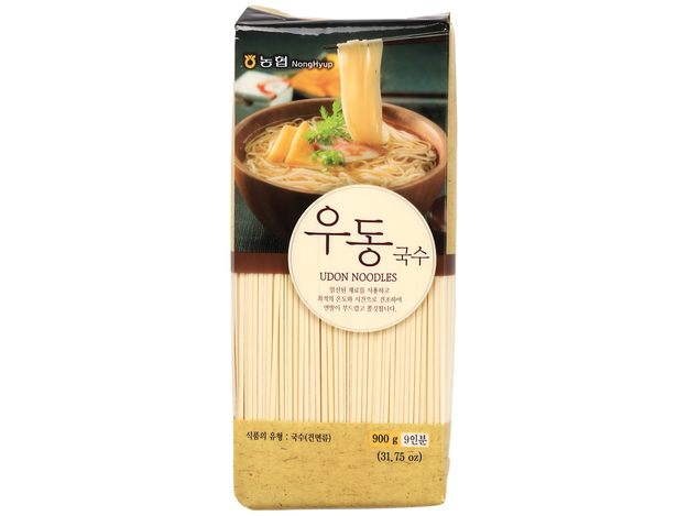 The Udon noodles from NongHyup, available in a large 900g pack, are thick, soft Korean-style wheat noodles. They are perfect for hot broths, hearty soups, stir-fry dishes, or as a side to meat and vegetable meals. Their elastic texture and neutral taste make them extremely versatile. Ideal for family meals or bulk storage.